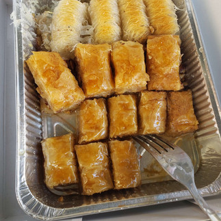 Trotzdem steht vor uns auf dem Tisch diese riesige Menge mit unglaublich leckeren Süßspeisen.